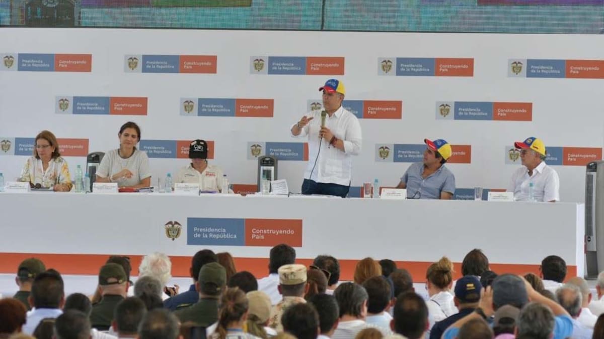 El jefe de Estado está acompañado por la ministra de Justicia, Margarita Cabello; la ministra de Transporte, Ángela María Orozco; la al Concejera Presidencial para las Regiones, Karen Abudinen; el gobernador del Atlántico, Eduardo Verano, y el alcalde de Barranquilla, Alejandro Char.