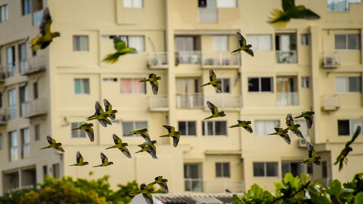 Desde el apartamento de Mabel Fernández, estas aves suenan como un centenar de cascabeles reproducidos en un amplificador de audio. Pero a ella, asomada por la ventana que da hacia la calle, en el segundo piso, no le molesta, según cuenta.