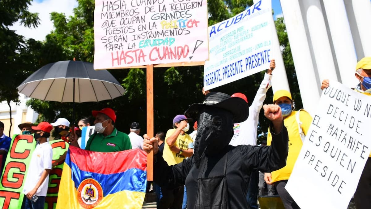 'Estamos unidos protestando por la falta de cumplimiento de este gobierno tan nefasto que tiene en total abandono a la población, no hay buena salud, ni educación, tampoco infraestructura, ni las condiciones mínimas que el pueblo necesita', indicó Francisco Valencia, integrante del comité ejecutivo de la Central Unitaria de Trabajadores (CUT).