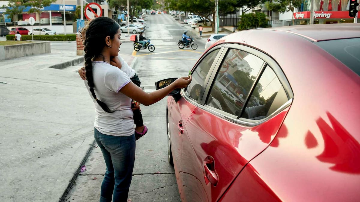 La escena es recurrente en los semáforos y andenes de diferentes sectores de la ciudad, pero aún más en el norte: mujeres con niños en brazos, o tomados de la mano, mientras ellas abordan a transeúntes o serpentean en medio de vehículos en cada cambio de luz roja a verde, ofreciendo lo que tienen para vender, que por lo general son dulces.