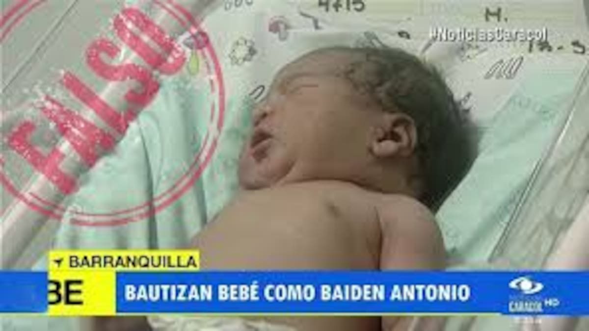 En Facebook ha circulado una publicación de la página El Platanal que toma un supuesto pantallazo de una nota realizada por Noticias Caracol donde se informa el bautizo de 'Baiden Antonio', un bebé que habría nacido en Barranquilla y que debería su nombre al presidente electo de Estados Unidos, Joe Biden.