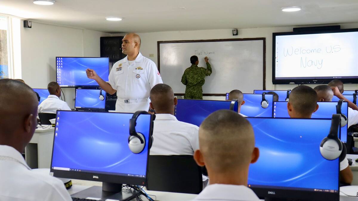 La Misión Naval Americana en Colombia, a través de su línea de esfuerzo denominada 'Fortalecimiento Institucional', donó 20 equipos tecnológicos tipo computadores y un Smart Board para el Centro de Idiomas de la Escuela Naval de Suboficiales ARC Barranquilla, gracias a los recursos financiados por el International Military Education & Training (IMET) del Gobierno de los Estados Unidos, programa que permite apoyar el desarrollo de habilidades en bilingüismo de los Marinos de Colombia.