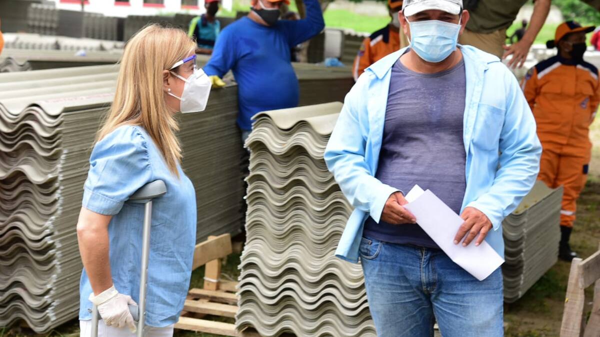 La gobernadora del Atlántico, Elsa Noguera, aseguró que se están entregando materiales de construcción como tejas y caballetes de fibrocemento, listones de madera, kits alimentarios y de aseo.