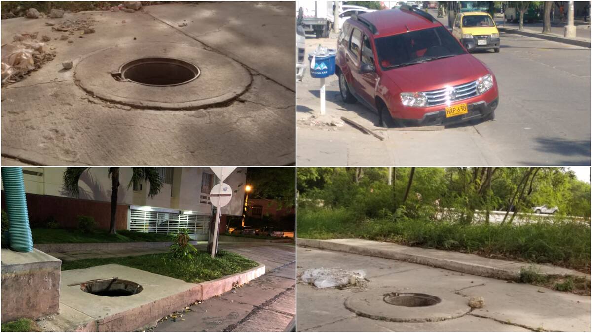 'Casi un año tienen esas alcantarillas descubiertas', reporta uno de los habitantes de la carrera 47 con calle 107 en el barrio Villa Santos, quien asegura que durante las noches se convierten en una trampa mortal para los conductores que transitan por esa zona, que además carece de iluminación. 'Es un peligro esa calle oscura', enfatiza el usuario que realizó el reporte a través de Wasapea a EL HERALDO.