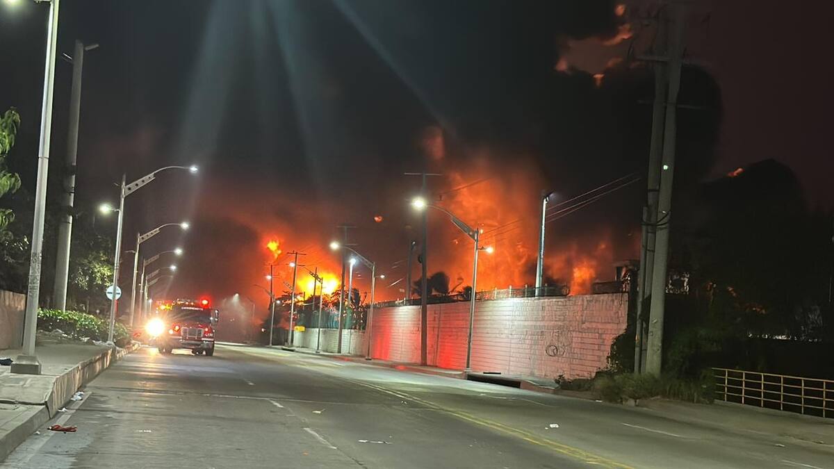 Alrededor de las 4:30 de la mañana el Cuerpo de Bomberos de Barranquilla atendió un fuerte incendio en la vía 40 con calle 85, zona industrial de Barranquilla, a un costado del río Magdalena.