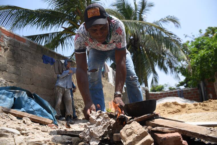 Los que se quedan permanecen la mayor parte del día afuera de los pequeños cuartos, debido al calor. En ese espacio arman el fogón de leña, donde ponen el caldero en el que cocinan lo poco que logran conseguir entre sus vecinos.