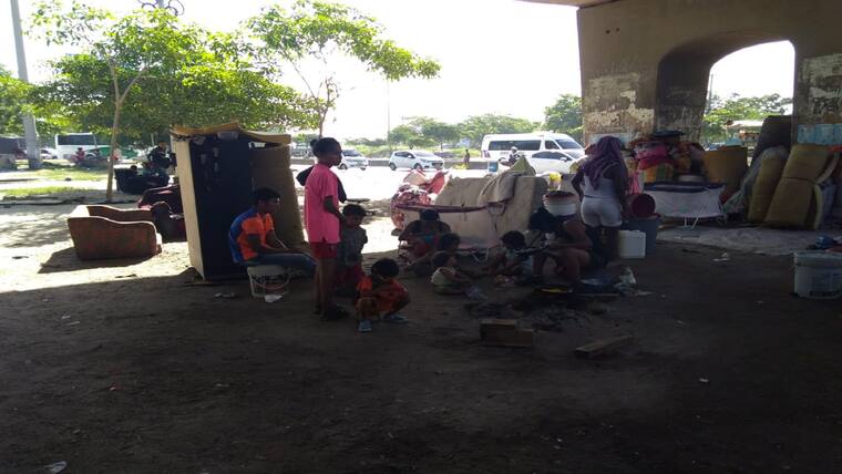 Nuevamente denuncian la invasión debajo del puente de Murillo con Circunvalar. Colchones, corrales, sillones, un baño y una cocina improvisada se pueden apreciar en la imagen donde niños y varios adultos se resguardan del sol en este sector de la ciudad.