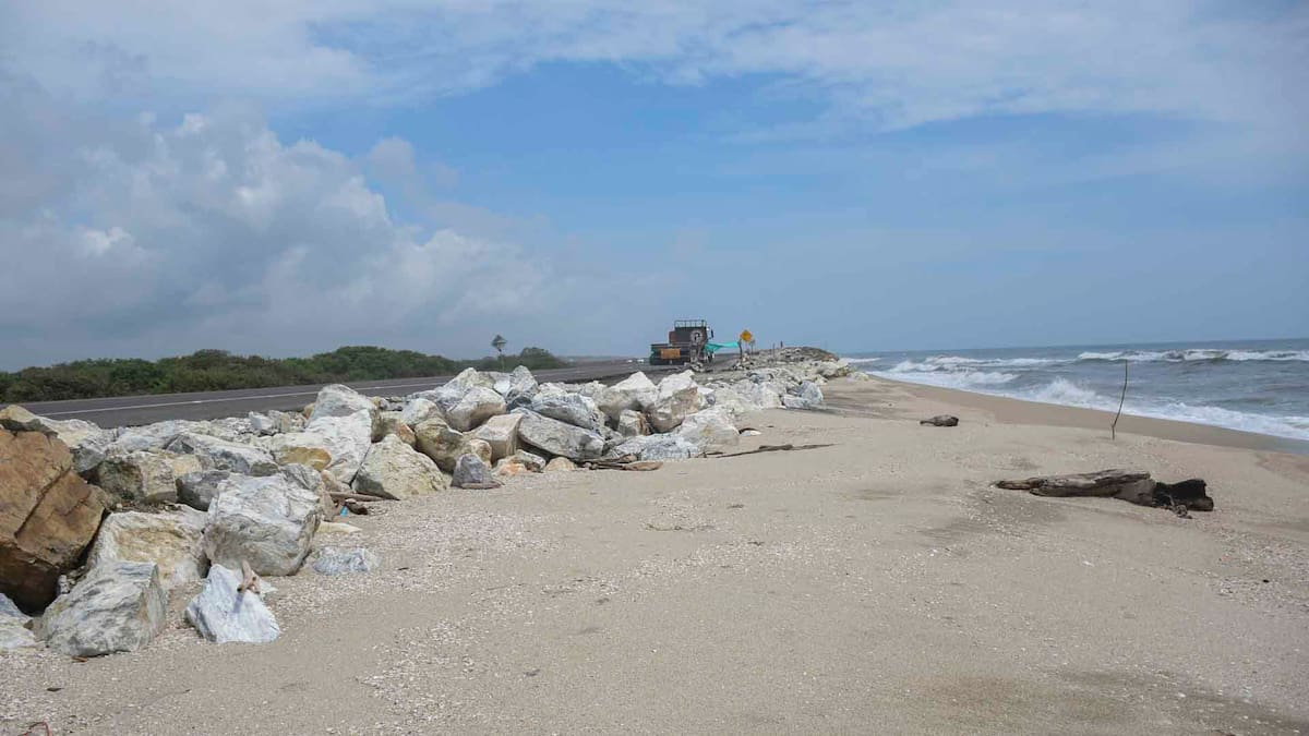 Eduardo García, uno de los pescadores de la zona, aseguró que el trabajo realizado por Invías 'no se ha desarmado', pero lo que se vio fue que el mar –como está más cerca de la carretera- se metió y se comenzó a llevar la arena.