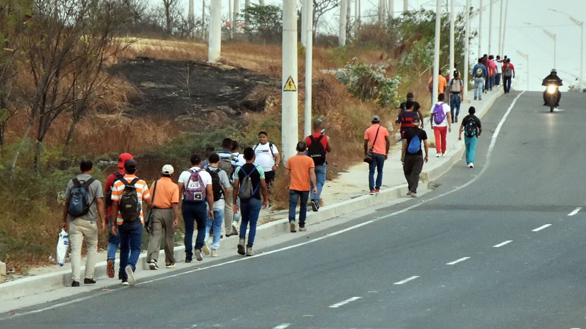 El camino se torna complicado en algunos segmentos del camino, donde no hay senderos peatonales, por lo que se ven obligados a bajar hasta la carretera, en la que el viento ocasionado por la velocidad de los carros los golpea hasta hacerlos tambalear.