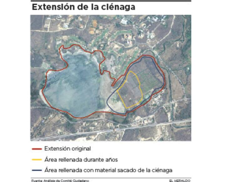 El informe anuncia que el cuerpo de agua ha perdido parte de su extensión original porque en áreas conexas a este se construyeron piscinas de criaderos de babillas, rellenadas algunas con material sacado de la misma ciénaga.