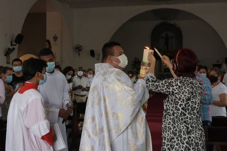 Les dejamos algunas fotografías de los actos celebrados, en medio de restricciones, este Sábado Santo en varias parroquias de Barranquilla.