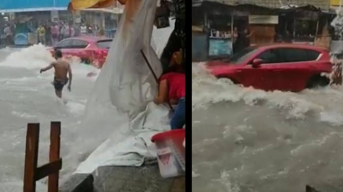En los reportes enviados a través de Wasapea de EL HERALDO, se evidencia el momento en que la camioneta es arrastrada por las aguas en inmediaciones del Éxito San Blas, en pleno centro.