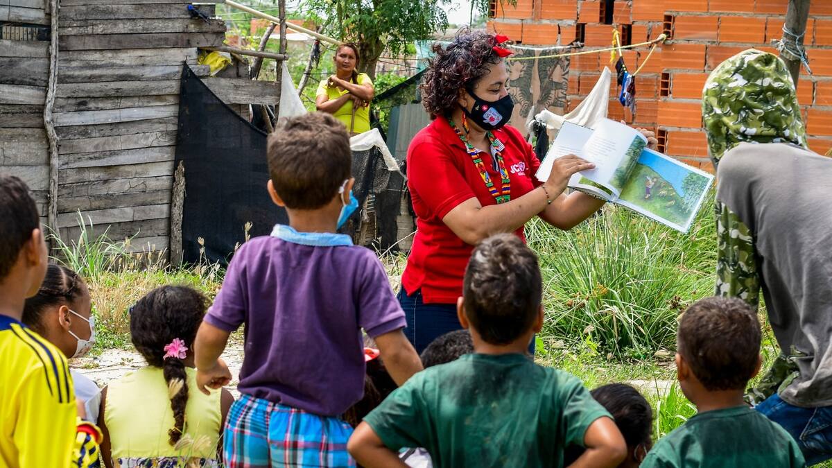 Karen es madre soltera. Su hijo, Iván, de tan solo seis años, es quien la impulsa y motiva a continuar con la labor que transforma vidas a través de la literatura. 'Él es el primero que se levanta, me ayuda a seleccionar los cuentos que vamos a leer, está pendiente de las meriendas de los niños e incluso a veces selecciona juguetes que ya no utiliza y se los da a los niños de la comunidad'.