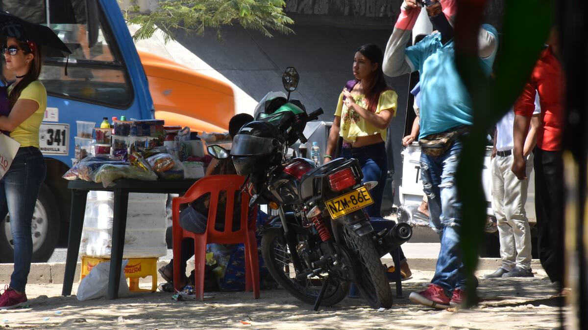 Sobre la estructura de cuatro carriles (dos de llegada y dos de salida) las ventas de refrescos, gaseosas, agua, jugos tropicales, bolis de frutas acaparan la atención de los transeúntes y de los pasajeros de los buses intermunicipales. Son las 11:25 y el calor en ese sector es insoportable.