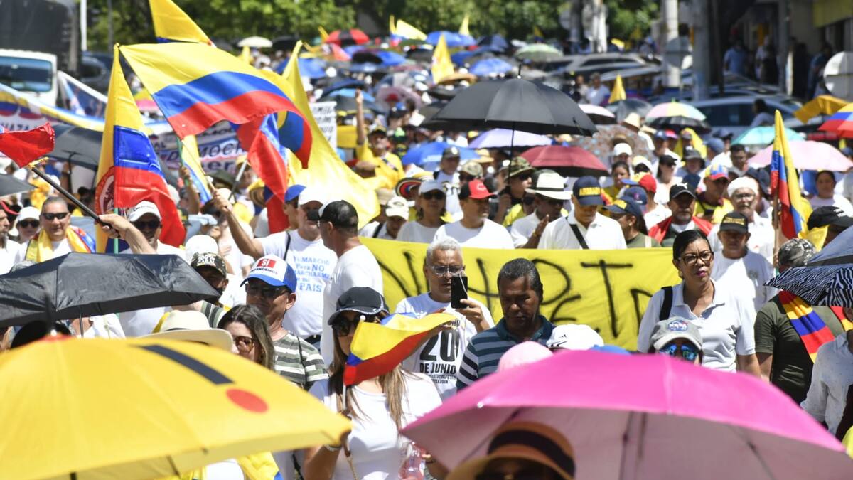 Con la bandera de Colombia sobre sus hombros y camisas blancas, una multitud de personas se concentraron durante la mañana del martes en la plaza Joe Arroyo para participar en una marcha contra el Gobierno actual y las reformas presentadas.