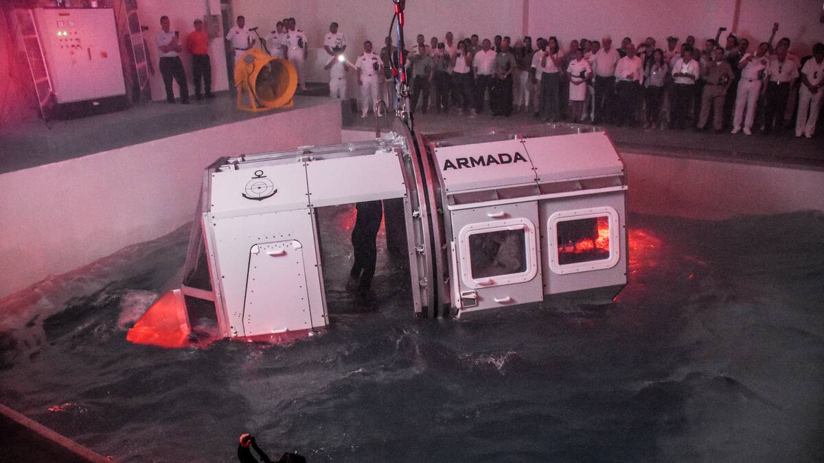 En el procedimiento de simulación que presentaron en la inauguración altos mandos de la fuerza armada, en conjunto con el ministro de Defensa se mostró, como funciona el centro de entrenamiento y cómo se puede sortear un suceso angustiante, ante una situación de tormenta en el mar, si se cuenta con una rigurosa preparación.