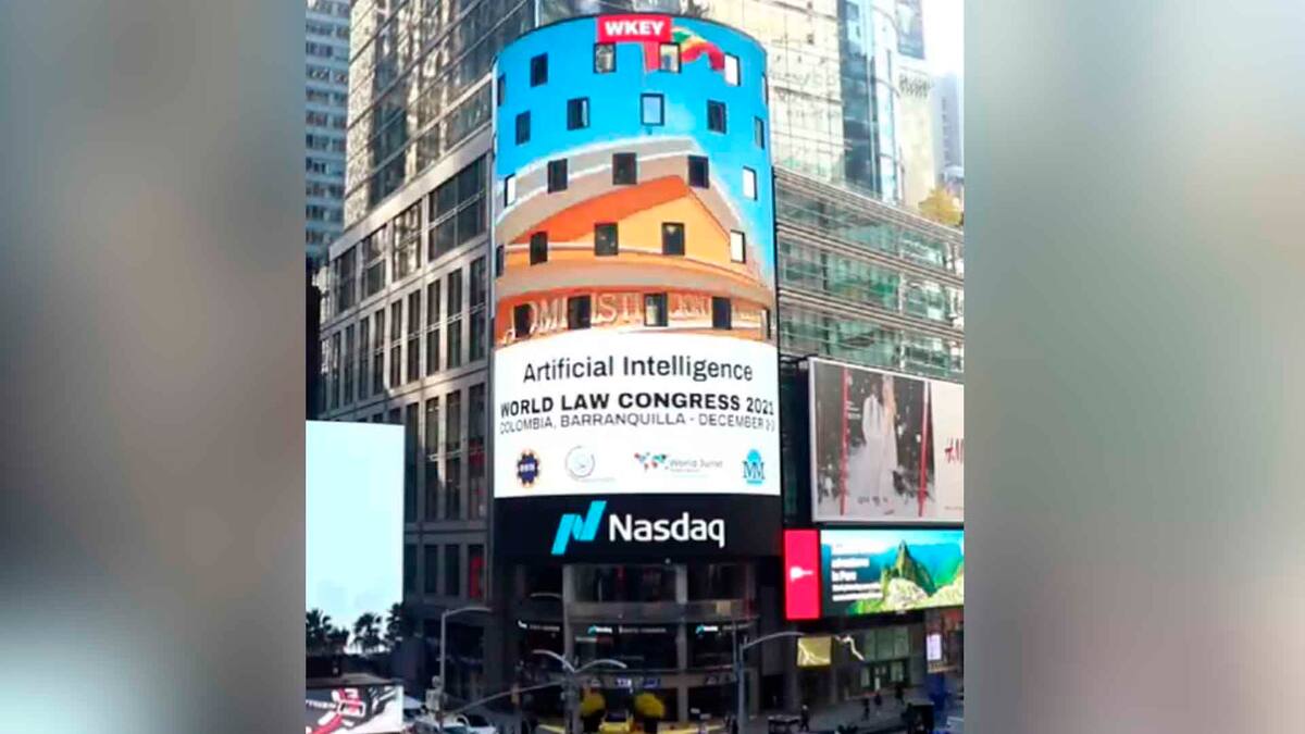 El Congreso Mundial de Juristas (World Law Congress), próximo a desarrollarse en Barranquilla, aparece en las grandes pantallas de Nueva York, en la conocida bolsa de valores de Nasdaq.
