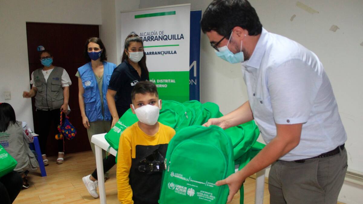 La Alcaldía de Barranquilla, a través de la Secretaría de Gobierno, hizo entrega de kits educativos, guías pedagógicas y kits de aseo a niños hijos de migrantes venezolanos, con el apoyo de las organizaciones como Acnur, OIM y Pastoral Social, con esta población asentada en Barranquilla.