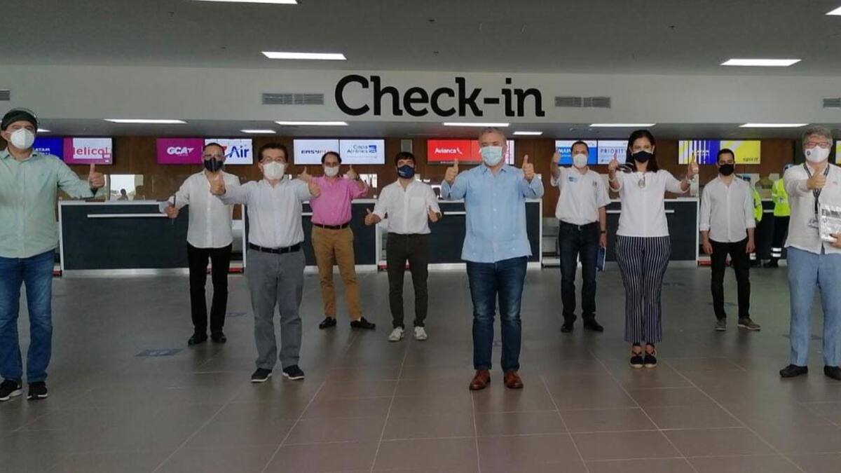 Durante su visita al aeropuerto Ernesto Cortissoz, el presidente Iván Duque verificó la implementación de los protocolos de bioseguridad para prevenir la propagación de la Covid-19 con el reinicio de la operación en esta terminal aérea desde el próximo primero de septiembre.