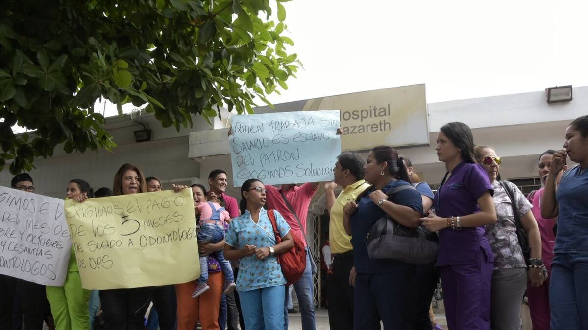 Desde tempranas horas de la mañana de ayer, más de 30 profesionales del Hospital Nazareth, entre odontólogos e higienistas, protestaron a las afueras de la entidad pidiendo por el pago de las mesadas atrasadas.