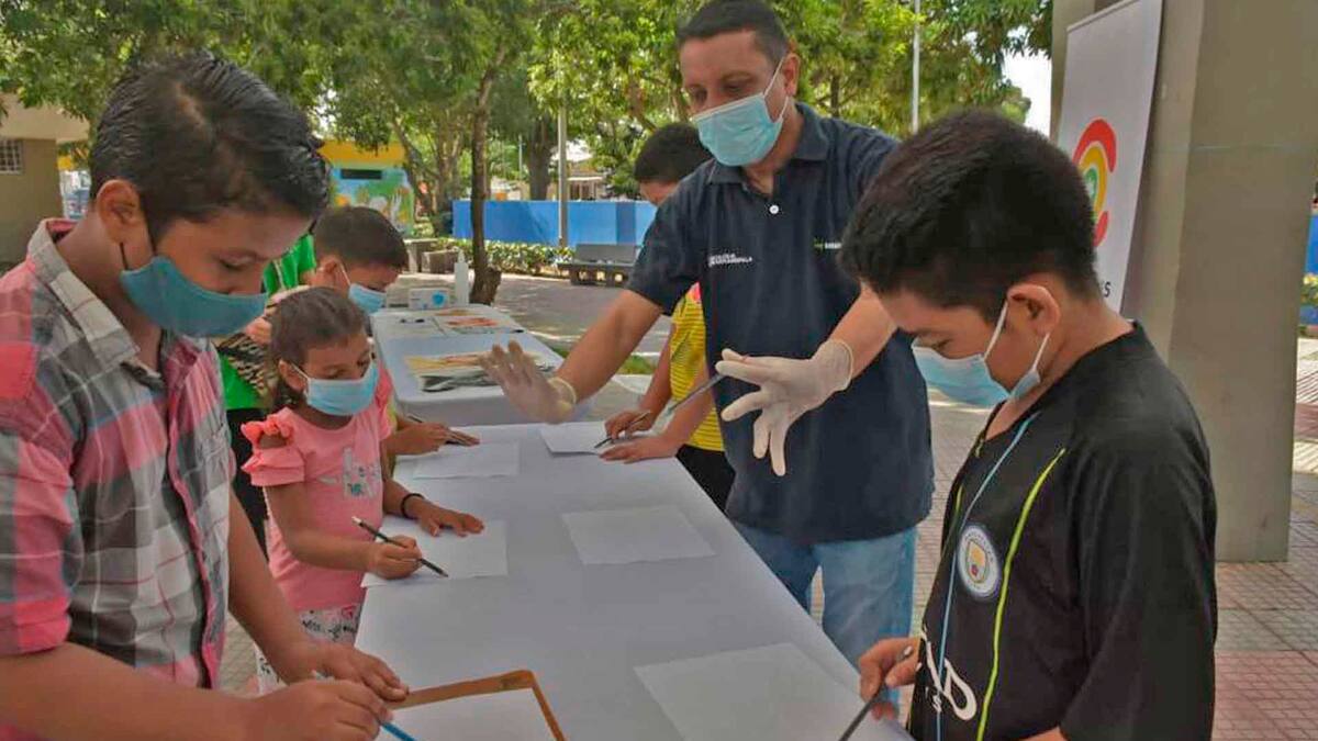 Desde tempranas horas de la mañana, los orientadores comenzaron sus actividades artísticas como danza, artes plásticas, dibujo y baile junto a los alumnos que se inscribieron previamente en la plataforma Meira-cdc.co del Distrito.