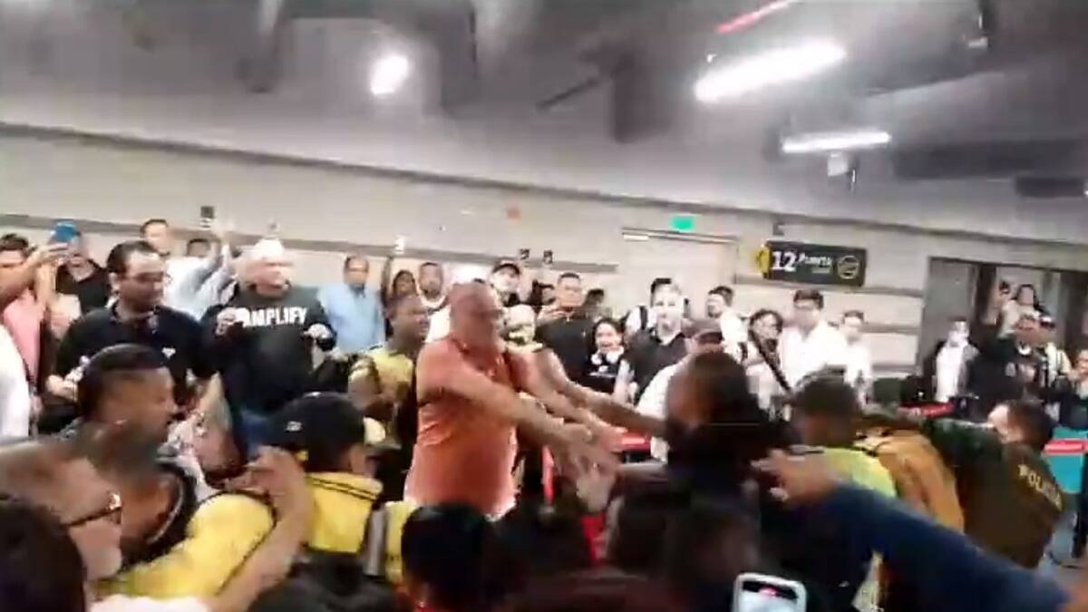 En los videos se puede observar como los presentes se fueron a los golpes mientras varios policías tratan de evitar la riña.