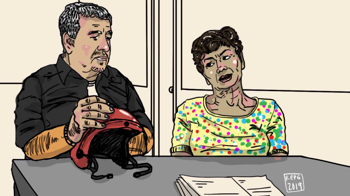 Uno al lado del otro, con la vista en frente, Mario y Gloria se sentaron en silencio. La sala de audiencias, una habitación rectangular de paredes blancas, aguardaba impoluta el comienzo de los descargos, cuando los dos explicaran los motivos que los trajeron a este despacho. La inspectora Bibiana Ortiz les dio la palabra.