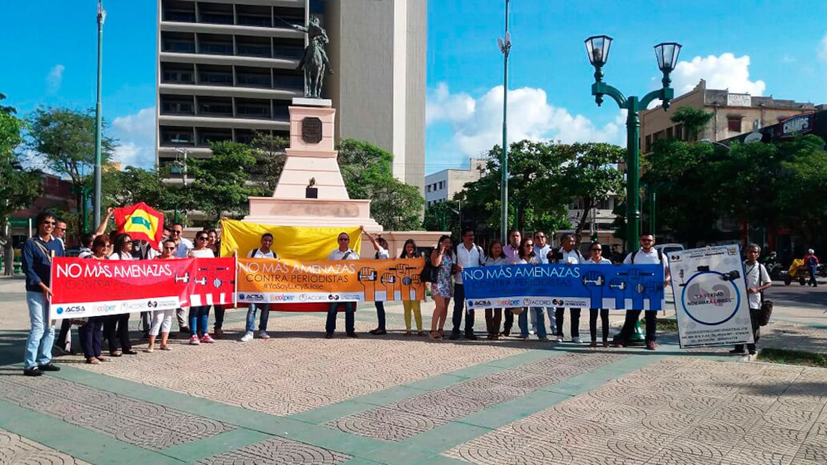 A esta hora gremios periodísticos de Barranquilla realizan un plantón en el Paseo Bolívar en solidaridad por las amenazas de las que han sido víctimas los comunicadores José Gómez Daza y Lucy Flórez Arrieta.
