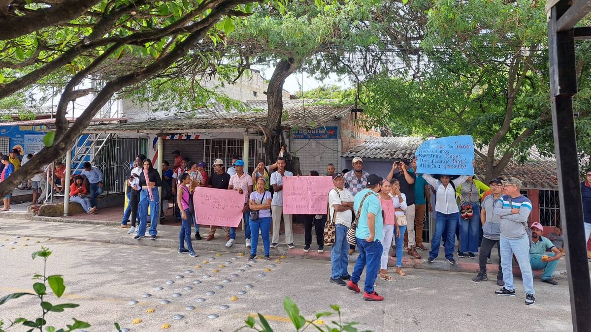 En horas más tempranas un grupo de damnificados de Piojó llegó a las afueras del colegio Evardo Turizo Palencia, en dónde se lleva a cabo el evento ‘Gobierno con los barrios populares’, para protestar y exigirle a la Nación soluciones definitivas a su situación de vivienda.