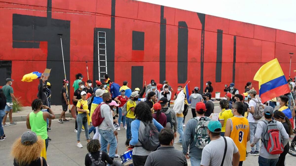 Con cánticos y pancartas un grupo de jóvenes se tomaron la intersección que conecta a la carrera 38 con circunvalar, en sentido norte - sur, en la ciudad de Barranquilla en una manifestación pacífica en la que grafiteros expresan sus emociones a través de este arte.