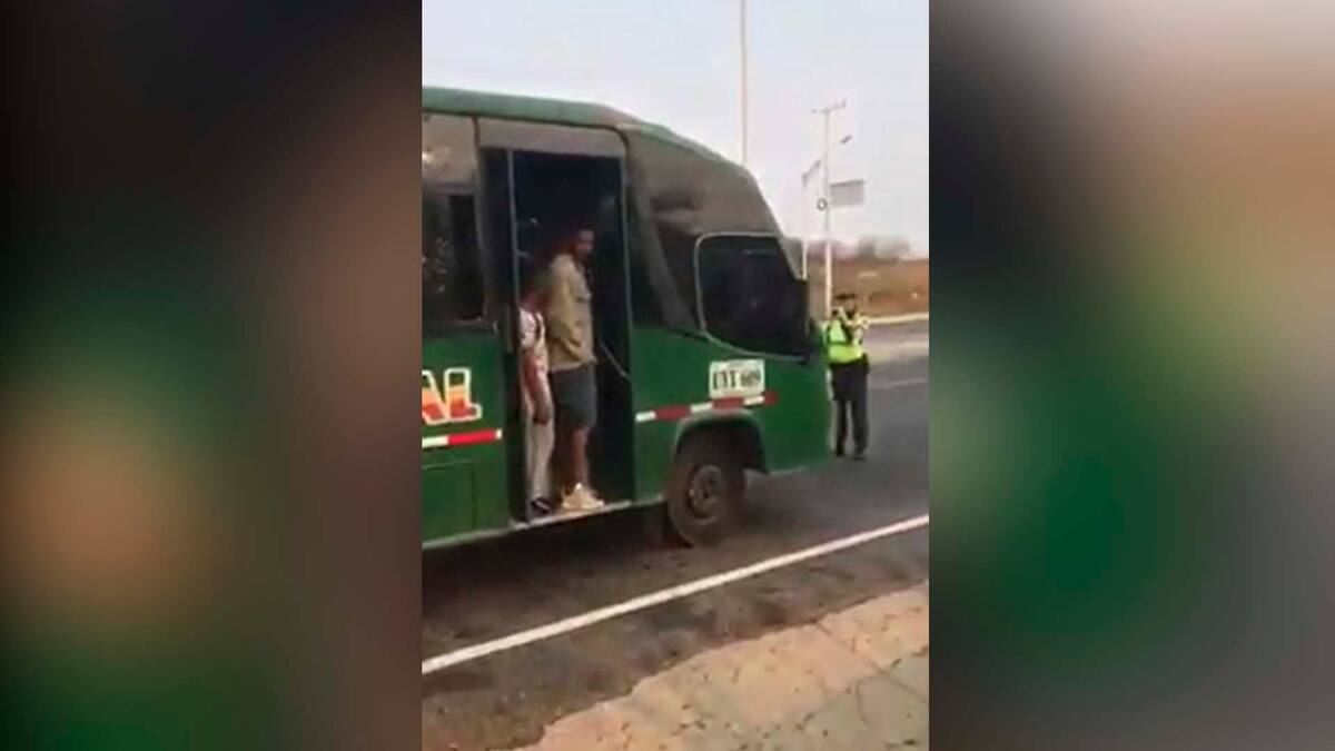 En un video que circuló en redes sociales se observa el bus de servicio público lleno de personas, incluso algunos en la puerta del vehículo, siendo detenido por la Policía. Se puede apreciar que varias personas que iban en el bus no utilizaban ningún elemento de protección contra el virus.