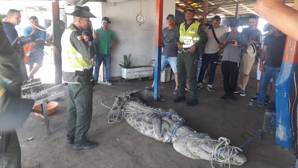 El reptil, que mide 4 metros y normalmente nada en aguas dulces, fue visto por un grupo de pescadores cuando se acercaba hacia la playa, donde se encontraban varias niñas jugando.