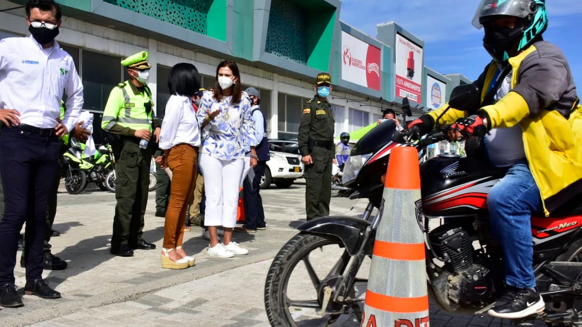 En el punto de sensibilización a motociclistas ubicado en la avenida Circunvalar a la altura de Caribe Verde, la ministra, el superintendente de Transporte, Camilo Pabón con apoyo de la Secretaria Distrital de Tránsito y Seguridad Vial de Barranquilla, Angélica Rodríguez, realizaron una jornada pedagógica dirigida a motociclistas.