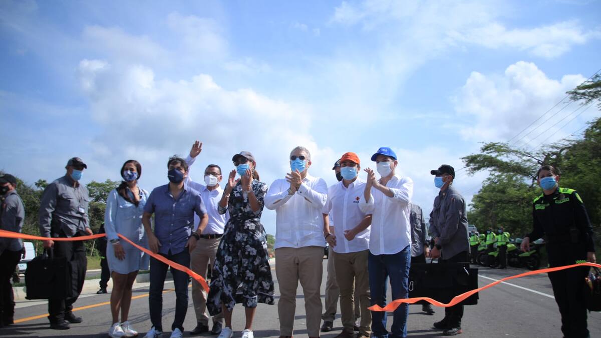 Acompañado de las autoridades locales, en la mañana de este sábado el presidente de la República, Iván Duque Márquez, inauguró siete kilómetros más de la doble calzada que conecta a Cartagena y Barranquilla, proyecto de infraestructura clave para la reactivación y la conectividad vial de la región Caribe.