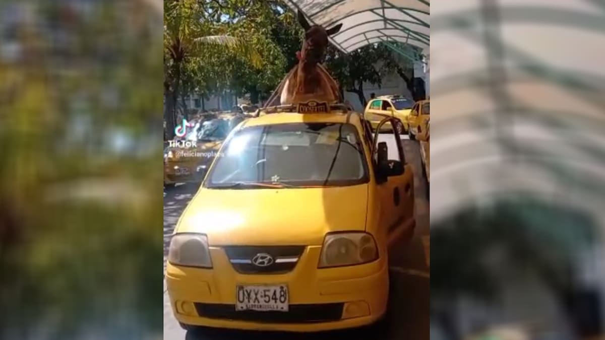 Un hecho inusual y hasta calificado de 'insólito' ocurrió este lunes en Barranquilla, donde los ciudadanos quedaron impactados por lo que estaban viendo: un ‘burro’ encima del techo de un taxi paseando por el puente de la Murillo, sentido Soledad-Barranquilla. ¿Maltrato animal? ¿Qué hacía un burro encima de un taxi? Fueron algunas de las incógnitas que dejó la situación.