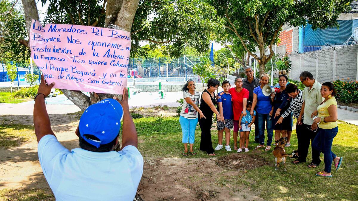Al igual que en el barrio Boyacá, los habitantes señalan que no recibieron socialización por parte de la empresa encargada, Golden Comunicaciones SAS, y que la antena representa un riesgo de salud para los niños y la comunidad en general.