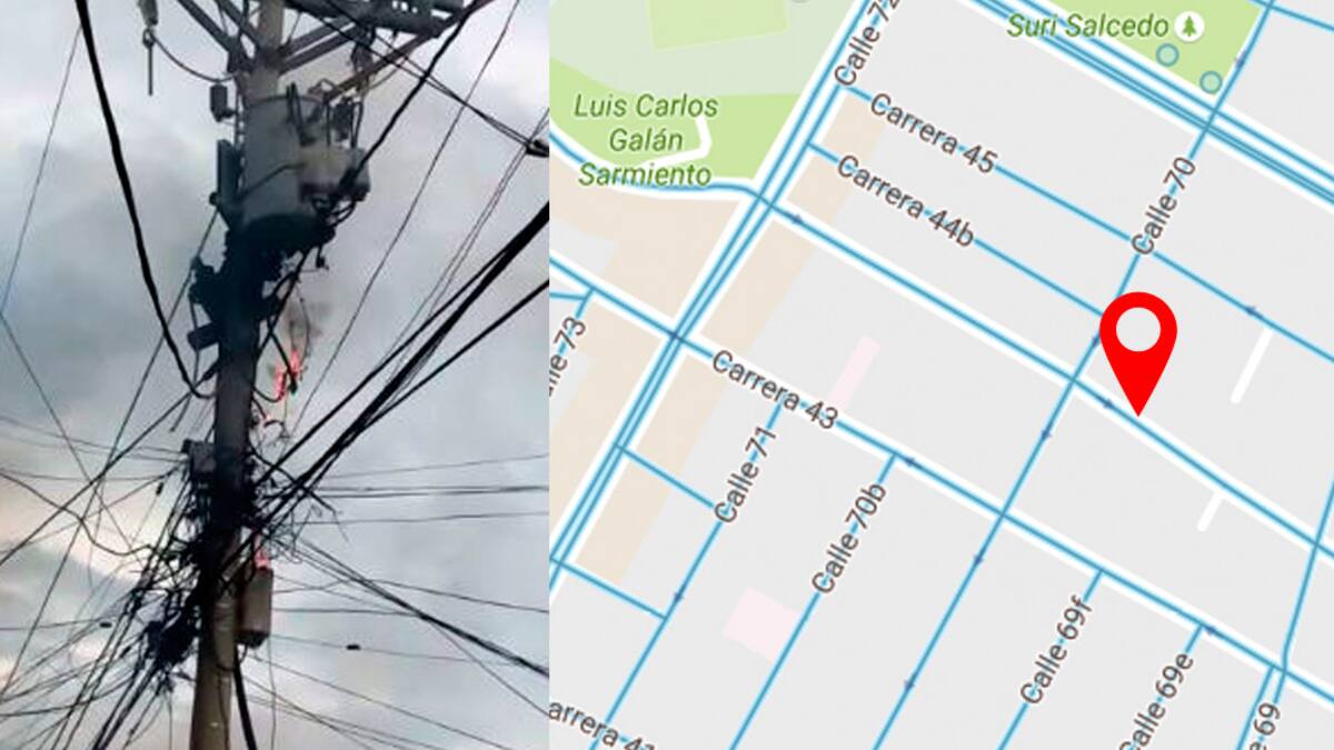 En su reporte, los residentes informaron que los cables 'se partieron y se incendiaron', hecho que, aseguran, dejó sin luz a 'varias' viviendas de la zona.