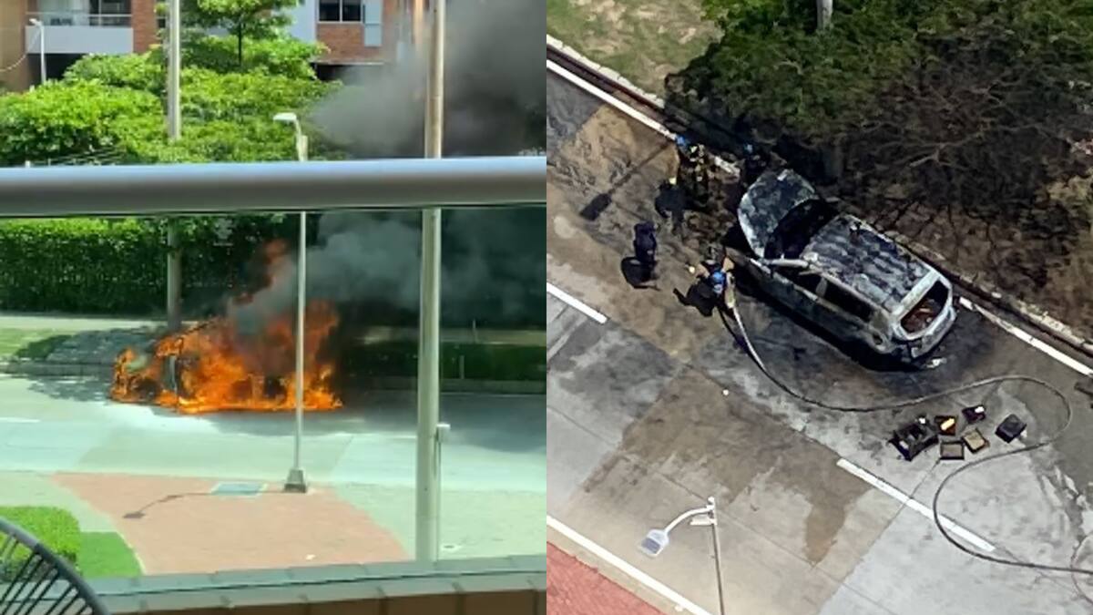 Según testigos, dentro del carro se encontraba una mujer que alcanzó a salir antes que este fuera consumido por las llamas.