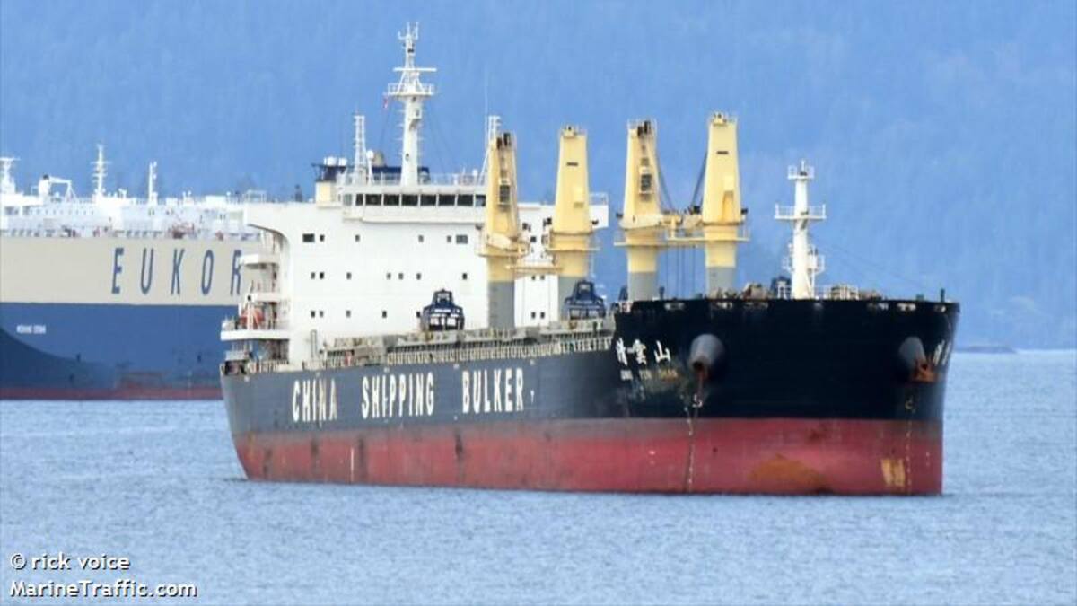 El buque de bandera de Hong Kong 'Qing Yun Shan' quedó sin maniobrabilidad a un costado del tajamar oriental, durante la entrada a Bocas de Cenizas la tarde de ayer.