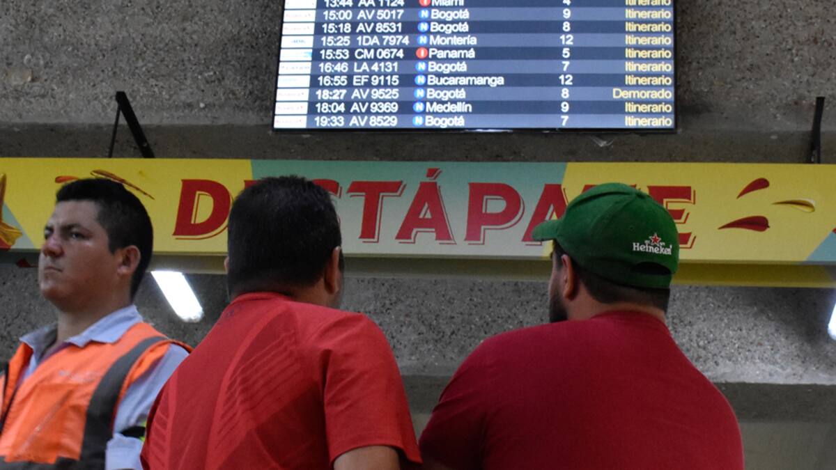 Su vuelo estaba pactado para las 7:15 a.m. con destino Bogotá, pero desde hace cuatro días lo cancelaron y lo reprogramaron para ayer a las 12:20 p.m. 'Pero nos encontramos que en ese tampoco sería por mal tiempo, sino que a las 3:00 p.m. y ahí se perdió la conexión para Medellín, pactada para las 4:00 p.m.', explicó Barreto, de 18 años.