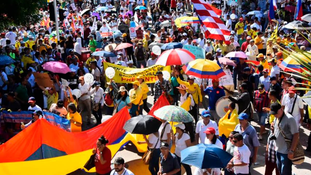 Asociaciones, sindicatos, instituciones públicas y grupos juveniles hacen parte de la marcha que continúa su recorrido por la carrera 46 para finalizar en el paseo Bolívar.