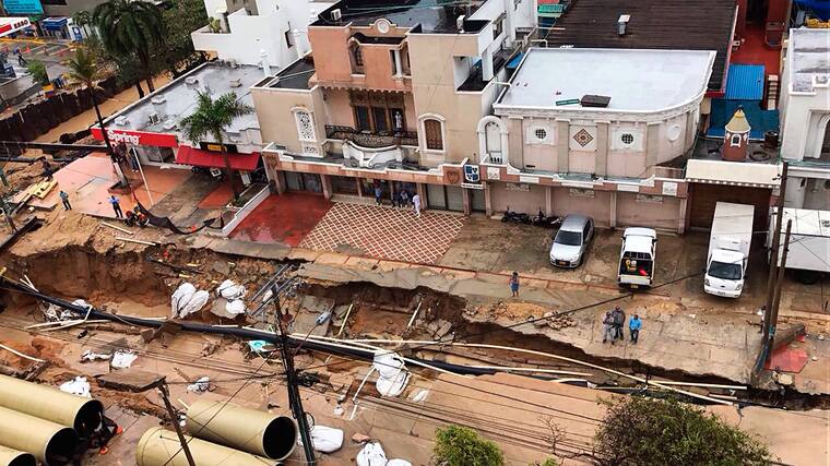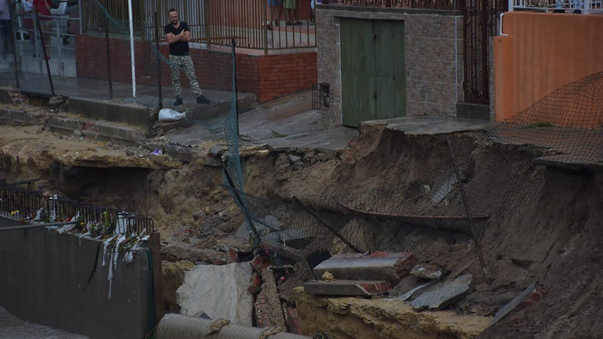 La Secretaría de Tránsito y Seguridad Vial informó, a través de un comunicado, que por las fuertes lluvias presentadas ayer se produjo la socavación lateral en 'el box culvert de la canalización del arroyo de la calle 76', lo cual formó el hundimiento en la base.