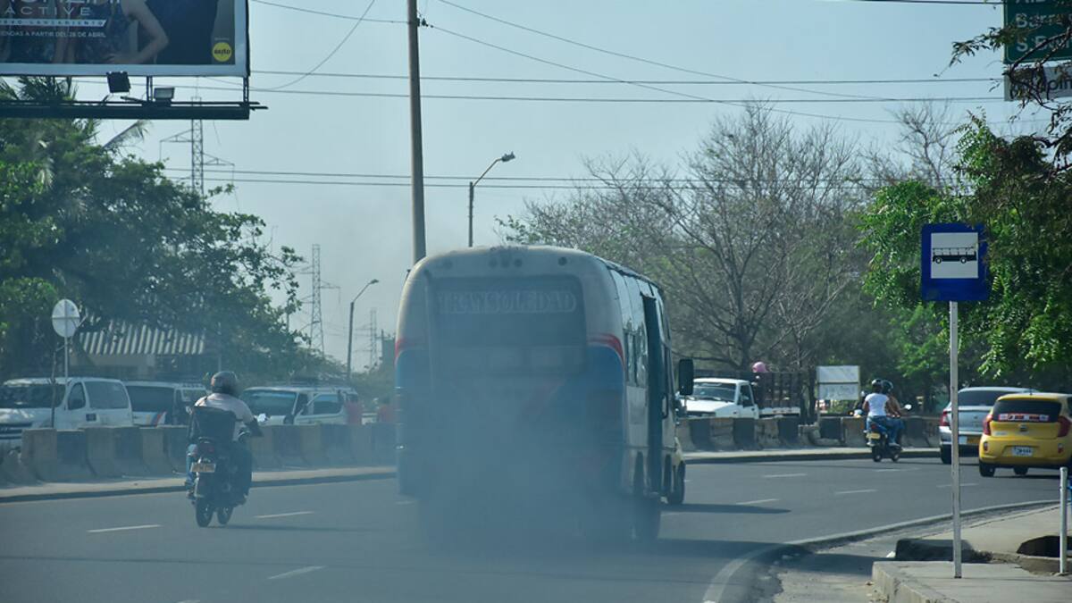 Alberto Escolar, director de la CRA, explica que el parque automotor es muy influyente en el aire de las ciudades, sobre todo cuando los buses y camiones viejos esparcen humo durante su tránsito, situación evidenciada por EL HERALDO en un recorrido por las zonas señaladas según el monitoreo en Soledad.