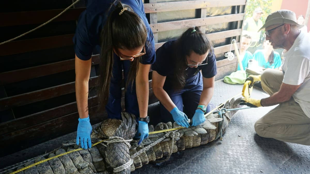 Un caimán aguja (Crocodylus acutus) fue rescatado el jueves, 20 de febrero, en las playas de Puerto Mocho, y llevado por la Policía Ambiental y Barranquilla Verde al Zoológico de Barranquilla, con el propósito de verificar si contaba con un microchip y realizar una revisión general de su estado de salud antes de trasladarlo a un sitio para su ubicación permanente.