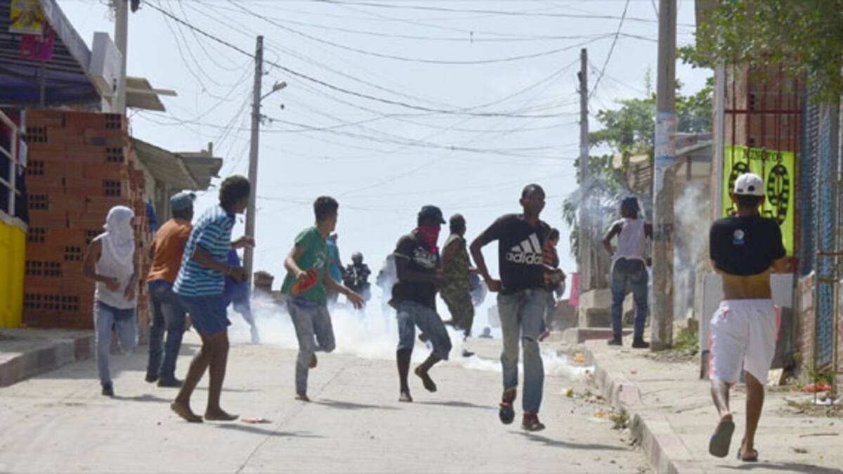 Algunos de los moradores de Pasacaballos, alterados por la intervención del Esmad, arremetieron con piedras y otros objetos contundentes contra el personal de la fuerza pública.