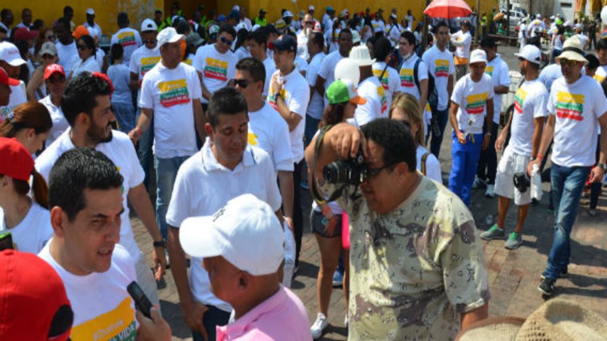 Algunos políticos en campaña aprovecharon la 'Marcha por la Vida' en Cartagena para hacer presencia con sus seguidores, que lucieron camisetas alusivas a sus movimientos.