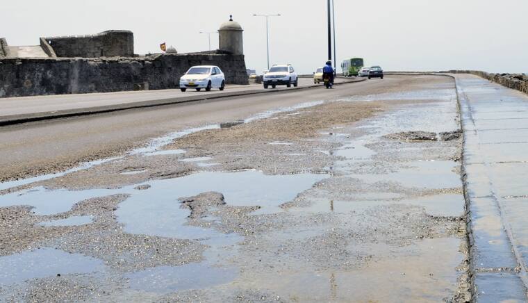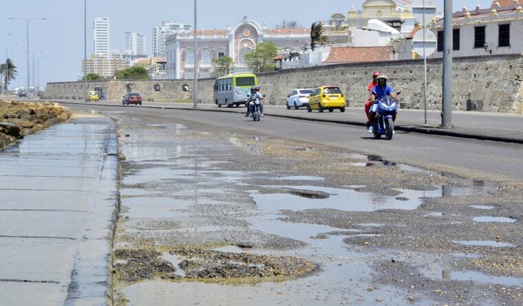 En Cartagena la Avenida Santander, cubierta con asfalto, se deteriora con facilidad porque es un material que no resiste el agua.