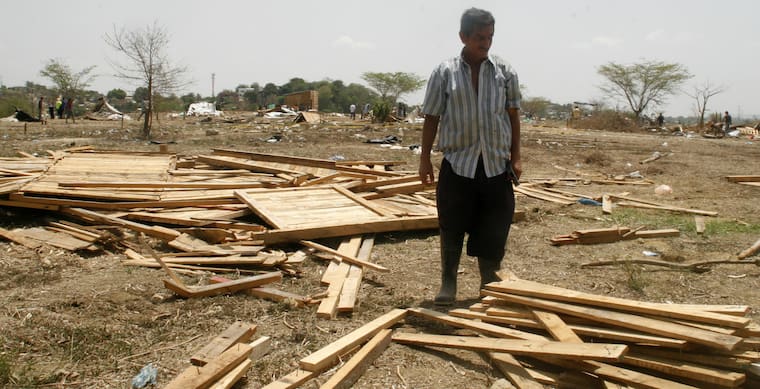 En total, se derribaron 500 cambuches. El desalojo se dio en cumplimiento de una orden del Establecimiento Público Ambiental (EPA), que explicó que dichos terrenos están destinados para hacer un parque ambiental en esta zona, ya que no es apto para edificaciones.
