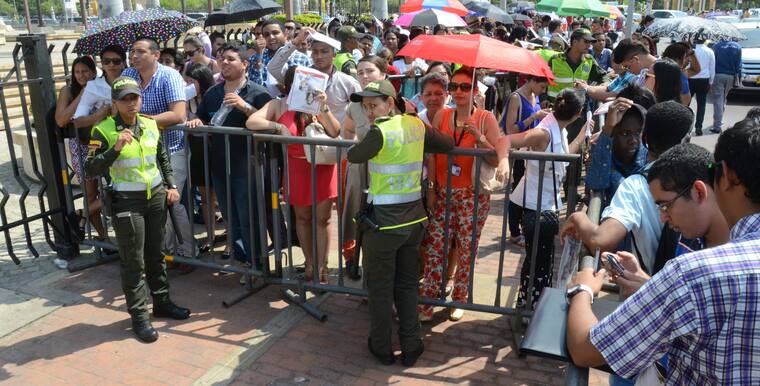Un joven universitario de Barranquilla fue quizá uno de los que más se hizo sentir gritando consignas contra las Farc, cuestionando al Gobierno y al proceso de paz. Sin embargo, unos hombres le pidieron que se calmara, que no protagonizara un escándalo mientras el Presidente interveniera.