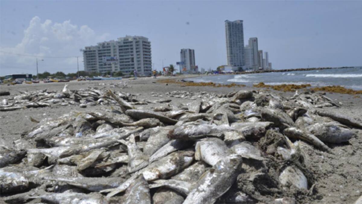 Las autoridades ambientales de Cartagena investigan las causas de la mortandad de peces presentada en la mañana de este domingo, en las playas del barrio Crespo, sector donde se construye el proyecto del túnel que empalmará la vía al mar con la avenida Santander.